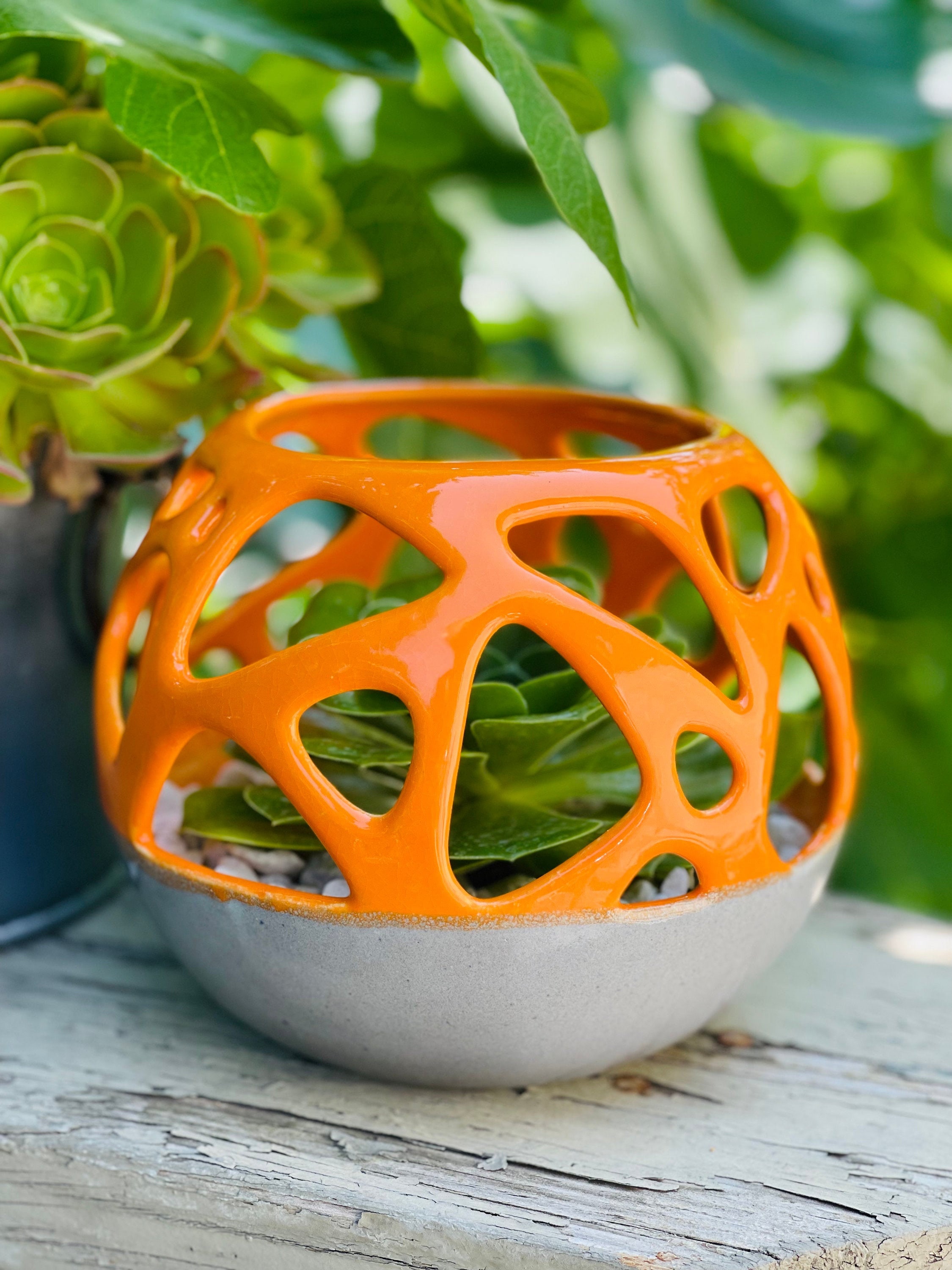 Orange Ceramic Sphere Voronoi Planter Succulent Planter Etsy Uk